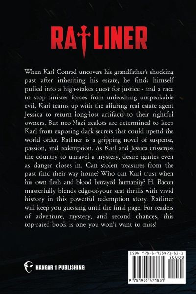 When Karl Conrad uncovers his grandfather's shocking past after inheriting his estate, he finds himself pulled into a high-stakes quest for justice - and a race to stop sinister forces from unleashing unspeakable evil. Karl teams up with the alluring real estate agent Jessica to return long-lost artifacts to their rightful owners. But neo-Nazi zealots are determined to keep Karl from exposing dark secrets that could upend the world order. Ratliner is a gripping novel of suspense, passion, and redemption. As Karl and Jessica crisscross the country to unravel a mystery, desire ignites even as danger closes in. Can stolen treasures from the past find their way home? Who can Karl trust when his own flesh and blood betrayed humanity? H. Bacon masterfully blends edge-of-your seat thrills with vivid history in this powerful redemption story. Ratliner will keep you guessing until the final page. For readers of adventure, mystery, and second chances, this top-rated book is one you won't want to miss!