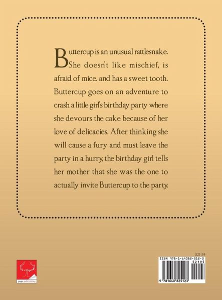 Buttercup is an unusual rattlesnake. She doesn't like mischief, is afraid of mice, and has a sweet tooth. Buttercup goes on an adventure to crash a little girl's birthday party where she devours the cake because of her love of delicacies. After thinking she will cause a fury and must leave the party in a hurry, the birthday girl tells her mother that she was the one to actually invite Buttercup to the party.