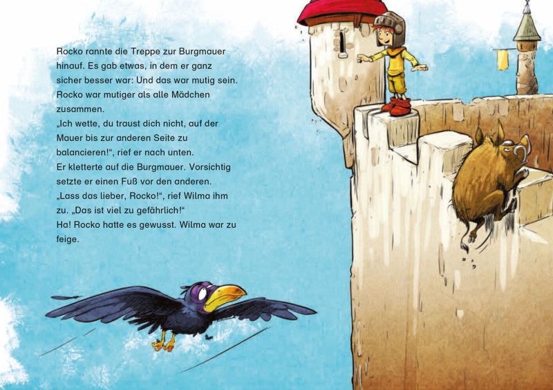 Raubritter Rocko ist stinkesauer: Seine Cousine Wilma ist zu Besuch und ausgerechnet er soll mit ihr spielen. Aber was kann man schon mit Mädchen machen? Sie können nicht gut werfen, schnell laufen oder weit springen. Und kämpfen erst recht nicht. Wenn Rocko sich da mal nicht täuscht! Denn Wilma ist gar nicht so übel.