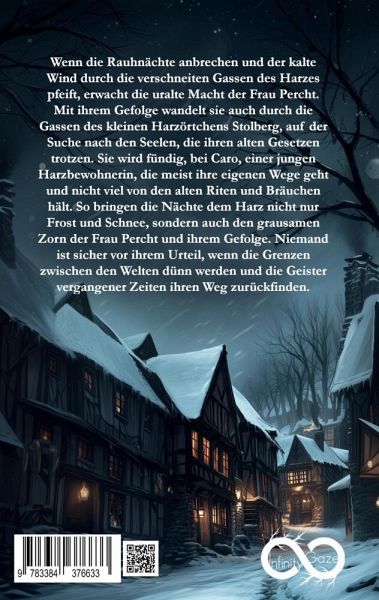 Wenn die Rauhnächte anbrechen und der kalte Wind durch die verschneiten Gassen des Harzes pfeift, erwacht die uralte Macht der Frau Percht.Mit ihrem Gefolge wandelt sie auch durch die Gassen des kleinen Harzörtchens Stolberg, auf der Suche nach den Seelen, die ihren alten Gesetzen trotzen. Sie wird fündig, bei Caro, einer jungen Harzbewohnerin, die meist ihre eigenen Wege geht und nicht viel von den alten Riten und Bräuchen hält. So bringen die Nächte dem Harz nicht nur Frost und Schnee, sondern auch den grausamen Zorn der Frau Percht und ihrem Gefolge. Niemand ist sicher vor ihrem Urteil, wenn die Grenzen zwischen den Welten dünn werden und die Geister vergangener Zeiten ihren Weg zurückfinden.