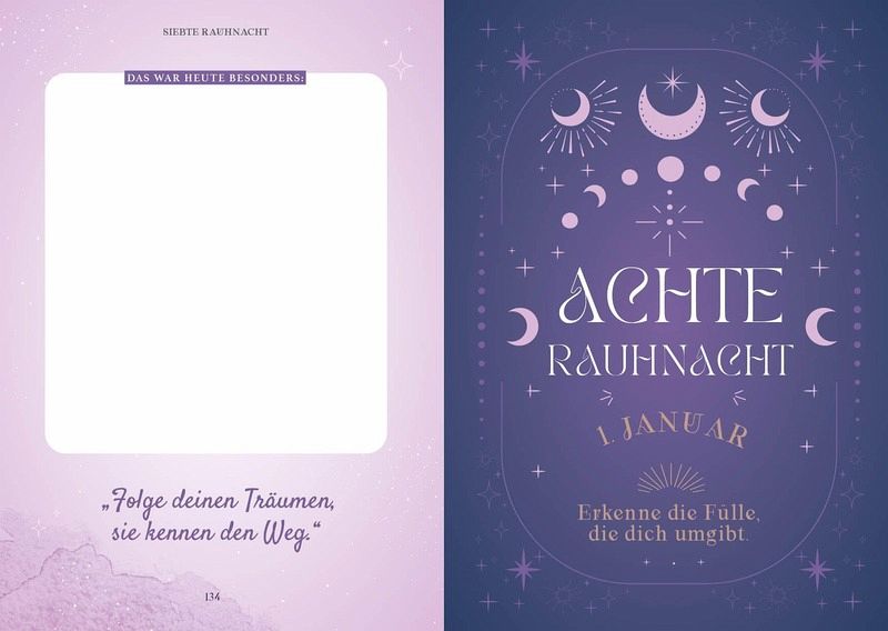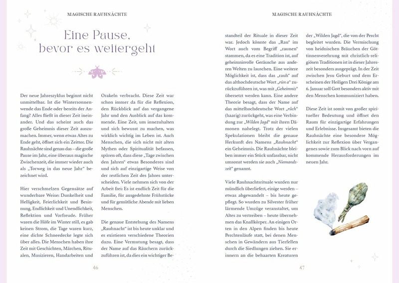 Entdecke alles Wissenswerte rund um Rauhnacht, Sperrnächte, Wintersonnenwende, Jahreskreis, Räuchern und Co., leicht verständlich und alltagsnah erklärt und in die heutige Zeit übertragenImmerwährender Jahresbegleiter: Lass dich durch alle 12 Rauhnächte begleiten: jeweils ein wundervolles Ritual, spannendes Naturwissen, die Affirmation des Tages und mehr erwarten dichMit Tagebuch-Teil: Halte Tag für Tag deine Gedanken, Träume und Visionen fest, zum immer wieder Nachschauen und Zurückerinnern