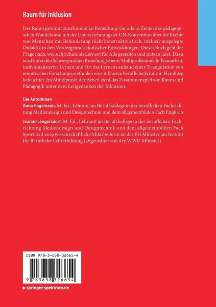 Der Raum gewinnt zunehmend an Bedeutung. Gerade in Zeiten des pädagogischen Wandels und mit der Unterzeichnung der UN-Konvention über die Rechte von Menschen mit Behinderung rückt konstruktivistisch, inklusiv ausgelegte Didaktik in den Vordergrund schulischer Entwicklungen. Dieses Buch geht der Frage nach, wie sich Schule als Lernort für Alle gestalten und nutzen lässt. Dazu wird unter den Schwerpunkten Beziehungsebene, Multiprofessionelle Teamarbeit, individualisiertes Lernen und Ort des Lernens anhand einer Triangulation von empirischen Forschungsmethoden eine inklusive berufliche Schule in Hamburg beleuchtet. Im Mittelpunkt der Arbeit steht das Zusammenspiel von Raum und Pädagogik unter dem Leitgedanken der Inklusion.