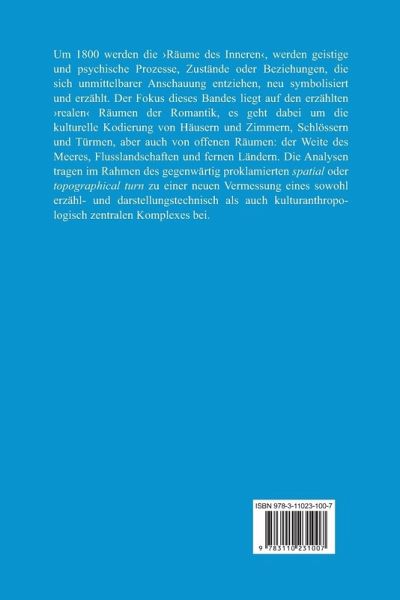 Um 1800 werden die 'Räume des Inneren', werden geistige und psychische Prozesse, Zustände oder Beziehungen, die sich unmittelbarer Anschauung entziehen, neu symbolisiert und narrativiert: Gehirnhöhlen werden begehbar, subjektivierte Landschaften werden zu phantastischen Bildern des Inneren. Im Gegensatz dazu erfasst der Band des Kolloquiums vor allem die erzählten 'realen' Räume in ihrer Symbolfunktion und der Art ihrer Narrativierung. Es geht dabei um die kulturelle Kodierung von Häusern und Zimmern, Schlössern und Türmen mit ihren Möglichkeiten des Abschließens und der Öffnung durch Fenster und Türen. Jedoch auch die sich öffnenden Räume (die Weite des Meeres, Flusslandschaften und ferne Länder) werden untersucht. Das Moment des Öffnens und Abschließens von Räumen kann die Perspektive von narratologischen Untersuchungen produktiv lenken, so können zum Beispiel Erfahrungen der Grenze die Figurenzeichnung maßgeblich strukturieren. Die Analysen der erzählten Räume/Raumbrüche und Architekturen und ihrer Beziehung zu ihren 'Bewohnern' tragen im Rahmen des gegenwärtig proklamierten spatial oder topographical turn zu einer neuen Vermessung eines sowohl erzähl- und darstellungstechnisch als auch kulturanthropologisch zentralen Komplexes bei.