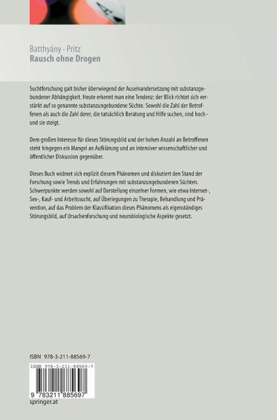 Dieses Buch widmet sich explizit diesem Phänomen und diskutiert den Stand der Forschung sowie Trends und Erfahrungen mit substanzungebundenen Süchten. Schwerpunkte werden sowohl auf Darstellung einzelner Formen, wie etwa Internet-, Sex-, Kauf- und Arbeitssucht, auf Überlegungen zu Therapie, Behandlung und Prävention, auf das Problem der Klassifikation dieses Phänomens als eigenständiges Störungsbild, auf Ursachenforschung und neurobiologische Aspekte gesetzt.