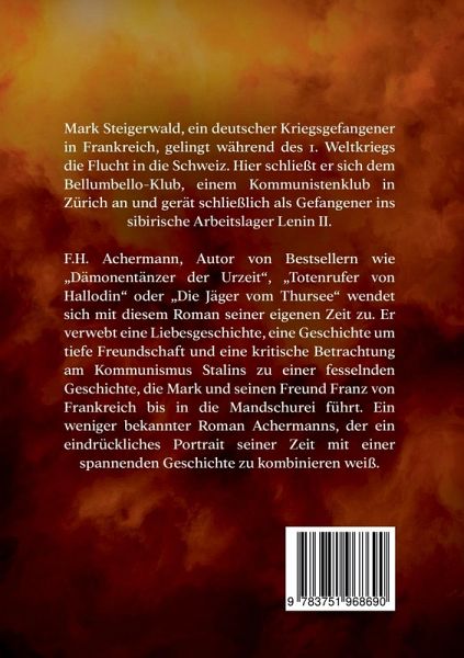 Mark Steigerwald, ein deutscher Kriegsgefangener in Frankreich, gelingt während des 1. Weltkriegs die Flucht in die Schweiz. Hier schließt er sich dem Bellumbello-Klub, einem Kommunistenklub in Zürich an und gerät schließlich als Gefangener ins sibirische Arbeitslager Lenin II.F.H. Achermann, Autor von Bestsellern wie "Dämonentänzer der Urzeit", "Totenrufer von Hallodin" oder "Die Jäger vom Thursee" wendet sich mit diesem Roman seiner eigenen Zeit zu. Er verwebt eine Liebesgeschichte, eine Geschichte um tiefe Freundschaft und eine kritische Betrachtung am Kommunismus Stalins zu einer fesselnden Geschichte, die Mark und seinen Freund Franz von Frankreich bis in die Mandschurei führt. Ein weniger bekannter Roman Achermanns, der ein eindrückliches Portrait seiner Zeit mit einer spannenden Geschichte zu kombinieren weiß.