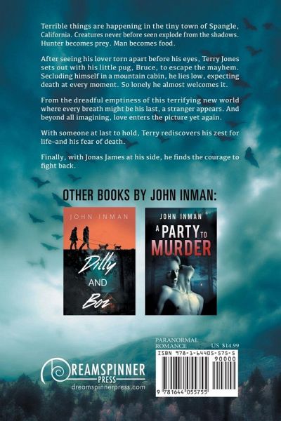 Terrible things are happening in the tiny town of Spangle, California. Creatures never before seen explode from the shadows. Hunter becomes prey. Man becomes food. After seeing his lover torn apart before his eyes, Terry Jones sets out with his little pug, Bruce, to escape the mayhem. Secluding himself in a mountain cabin, he lies low, expecting death at every moment. So lonely he almost welcomes it. From the dreadful emptiness of this terrifying new world where every breath might be his last, a stranger appears. And beyond all imagining, love enters the picture yet again. With someone at last to hold, Terry rediscovers his zest for life--and his fear of death. Finally, with Jonas James at his side, he finds the courage to fight back.