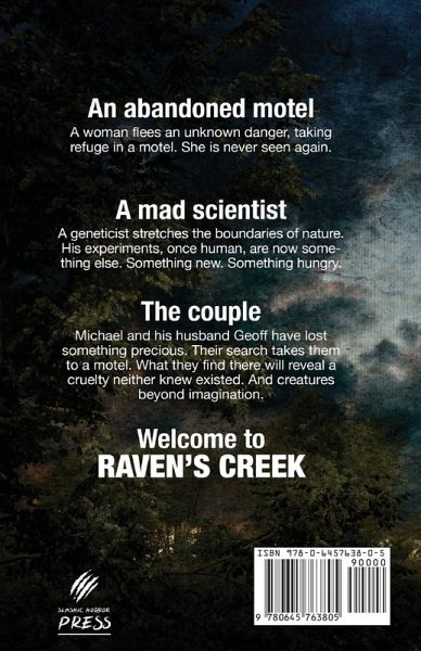 2023 Bookstagram Winner for LGBTQ+ Novel of the Year An abandoned motel. A woman flees an unknown danger, taking refuge in a motel. She is never seen again. A mad scientist. A geneticist stretches the boundaries of nature. His experiments, once human, are now something else. Something new. Something hungry. The couple. Michael and his husband Geoff have lost something precious. Their search takes them to a motel. What they find there will reveal a cruelty neither knew existed. And creatures beyond imagination. Welcome to Raven's Creek.