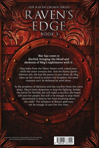 War has come to Rocfeld, bringing the blood and darkness of Meg’s nightmares with it. Meg hides from the Silent Sisters with a dead man, while her sister remains lost. And the Raven Queen believes only she has the power to save them all. Meg takes up her sword to protect the kingdom, but some enemies can’t be defeated by steel alone. As the prophecy of darkness and loss touches those she cares about, Meg is more desperate to stop the fighting. Amidst the battle for Rocfeld, she will make a sacrifice she hopes will save her people. But will it be enough to stop those determined to destroy her from knocking down the walls? The whispers of distant gods may not be enough to save her this time.