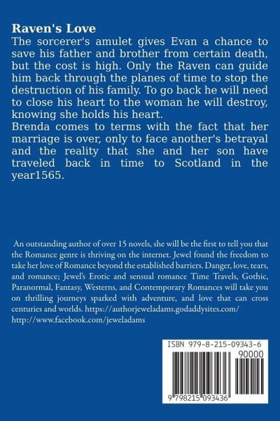 Raven's Love The sorcerer's amulet gives Evan a chance to save his father and brother from certain death, but the cost is high. Only the Raven can guide him back through the planes of time to stop the destruction of his family. To go back he will need to close his heart to the woman he will destroy, knowing she holds his heart. Brenda comes to terms with the fact that her marriage is over, only to face another's betrayal and the reality that she and her son have traveled back in time to Scotland in the year1565.