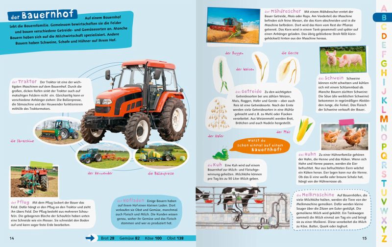 Was ist eigentlich Käse? Warum muss ich Zähneputzen? Und wohin bringt das Müllauto den Müll? Dieses umfangreiche Lexikon liefert verlässliche Antworten auf all die Fragen, die Kinder im Vor- und Grundschulalter stellen. Die mehr als 1.000 Stichworte sind alphabetisch geordnet und reichen von A wir Arzt bis zu Z wie Zoo. Egal ob es um Ballett, Gesundheit, Pferde, Roboter, den Weltraum oder Zahlen geht: Kurze altersgerechte Sachtexte, begleitet von vielen Fotos und Illustrationen, vermitteln den Lesern Sachwissen auf leicht verständliche Weise. Die ABC-Leiste, die farbigen Seiten und die Buchstabensymbole machen die Nutzung dieses Nachschlagewerks kinderleicht.