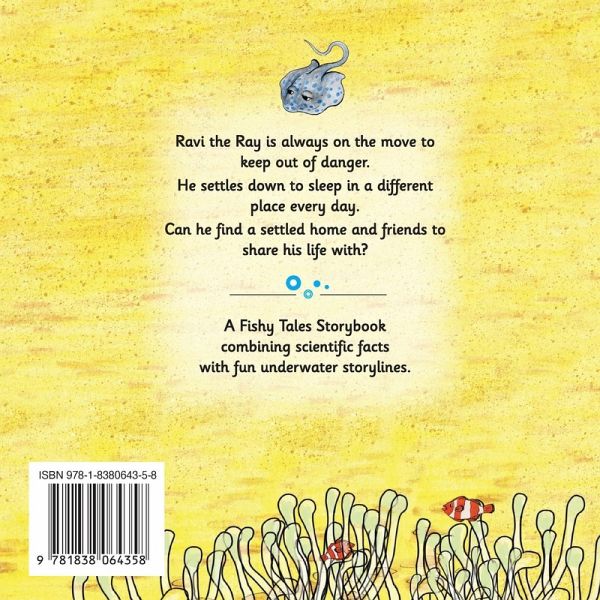 Ravi the Ray is always on the move to keep out of danger. He settles down to sleep in a different place every day. Can he find a settled home and friends to share his life with? Fishy Tale Storybooks are fun underwater storylines with scientific facts about ocean creatures at the back of the books. These books are aimed at young people aged 3-6 years old. The stories are entertaining, informative and a good introduction to myriad and diverse life in the oceans These are tales that deal with a wide variety of moral values, feelings, and other aspects of personal and social well-being. Great for parents to share with youngsters with lots of starting points for discussion.