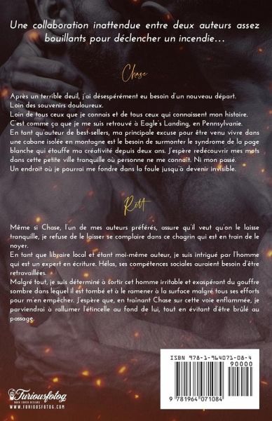 Une collaboration inattendue entre deux auteurs assez bouillants pour déclencher un incendie...Chase Après un terrible deuil, j'ai désespérément eu besoin d'un nouveau départ. Loin des souvenirs douloureux. Loin de tous ceux que je connais et de tous ceux qui connaissent mon histoire. C'est comme ça que je me suis retrouvé à Eagle's Landing, en Pennsylvanie. En tant qu'auteur de best-sellers, ma principale excuse pour être venu vivre dans une cabane isolée en montagne est le besoin de surmonter le syndrome de la page blanche qui étouffe ma créativité depuis deux ans. J'espère redécouvrir mes mots dans cette petite ville tranquille où personne ne me connaît. Ni mon passé.Un endroit où je pourrai me fondre dans la foule jusqu'à devenir invisible.Rett Même si Chase, l'un de mes auteurs préférés, assure qu'il veut qu'on le laisse tranquille, je refuse de le laisser se complaire dans ce chagrin qui est en train de le noyer. En tant que libraire local et étant moi-même auteur, je suis intrigué par l'homme qui est un expert en écriture. Hélas, ses compétences sociales auraient besoin d'être retravaillées. Malgré tout, je suis déterminé à sortir cet homme irritable et exaspérant du gouffre sombre dans lequel il est tombé et à le ramener à la surface malgré tous ses efforts pour m'en empêcher. J'espère que, en traînant Chase sur cette voie enflammée, je parviendrai à rallumer l'étincelle au fond de lui, tout en évitant d'être brûlé au passage. Note : Raviver Chase est une romance émouvante et slow-burn qui évoque l'amour après un deuil. N'oubliez pas de jeter un il aux avertissements relatifs au contenu de ce livre avant de le lire ou de l'acheter. Vous les trouverez au début du livre ainsi que sur mon site internet. Cette romance gay indépendante a une happy end garantie, sans infidélité ni cliffhanger.