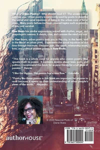 Raw Beats: Urban Poetry is a poetry book written from the perspective of a Black Poet. It contains three chapters of poems about the current political and social struggles of urban life. The joys of life are also revealed in poems about love and family. What is Urban Poetry? Why should you read it? The answers may surprise you. Urban poetry is commonly used by poets to describe the social and racial injustices of living in the urban core of large cities. Many poets before Diane have covered topics such as poverty, stress, and survival. Reading this book will make you feel something real. Raw…mehr