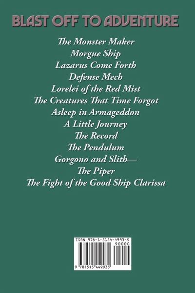 Collected her are thirteen exciting stories by one of science fiction and fantasy's all time greats! Winner of the World Fantasy, Bram Stoker, Emmy, and Hugo awards. More than 250 pages of reading enjoyment. Included here are: The Monster Maker Morgue Ship Lazarus Come Forth Defense Mech Lorelei of the Red Mist The Creatures That Time Forgot Asleep in Armageddon A Little Journey The Record The Pendulum Gorgono and Slith The Piper The Fight of the Good Ship Clarissa