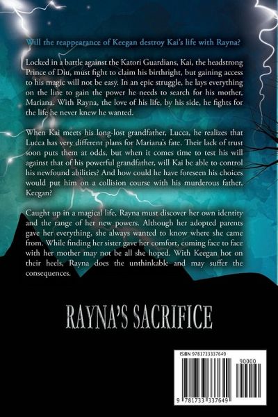 Will the reappearance of Keegan destroy Kai's life with Rayna? Locked in a battle against the Katori Guardians, Kai, the headstrong Prince of Diu, must fight to claim his birthright, but gaining access to his magic will not be easy. In an epic struggle, he lays everything on the line to gain the power he needs to search for his mother, Mariana. With Rayna, the love of his life, by his side, he fights for the life he never knew he wanted. When Kai meets his long-lost grandfather, Lucca, he realizes that Lucca has very different plans for Mariana's fate. Their lack of trust soon puts them at odds, but when it comes time to test his will against that of his powerful grandfather, will Kai be able to control his newfound abilities? And how could he have foreseen his choices would put him on a collision course with his murderous father, Keegan? Caught up in a magical life, Rayna must discover her own identity and the range of her new powers. Although her adopted parents gave her everything, she always wanted to know where she came from. While finding her sister gave her comfort, coming face to face with her mother may not be all she hoped. With Keegan hot on their heels, Rayna does the unthinkable and may suffer the consequences.