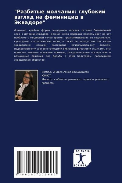 Femicid, krajnqq forma gendernogo nasiliq, ostawil boleznennyj sled w istorii Jekwadora. Dannaq kniga prizwana prolit' swet na ätu problemu s gendernoj tochki zreniq, proanalizirowat' ee social'nye, kul'turnye i politicheskie korni, a takzhe ee posledstwiq dlq zhizni äkwadorskih zhenschin. Blagodarq ischerpywaüschemu analizu, podkreplennomu sootwetstwuüschimi bibliograficheskimi ssylkami, ona prizwana wyqwit' osnownye prichiny, razrushitel'nye posledstwiq i wozmozhnye resheniq dlq bor'by s ätim bedstwiem, poraziwshim äkwadorskoe obschestwo.