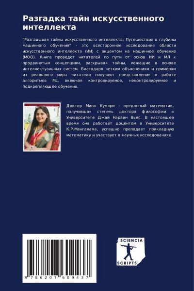 "Razgadywaq tajny iskusstwennogo intellekta: Puteshestwie w glubiny mashinnogo obucheniq" - äto wsestoronnee issledowanie oblasti iskusstwennogo intellekta (II) s akcentom na mashinnoe obuchenie (MOO). Kniga prowedet chitatelej po puti ot osnow II i ML k prodwinutym koncepciqm, raskrywaq tajny, lezhaschie w osnowe intellektual'nyh sistem. Blagodarq chetkim ob#qsneniqm i primeram iz real'nogo mira chitateli poluchaüt predstawlenie o rabote algoritmow ML, wklüchaq kontroliruemoe, nekontroliruemoe i podkreplqüschee obuchenie.