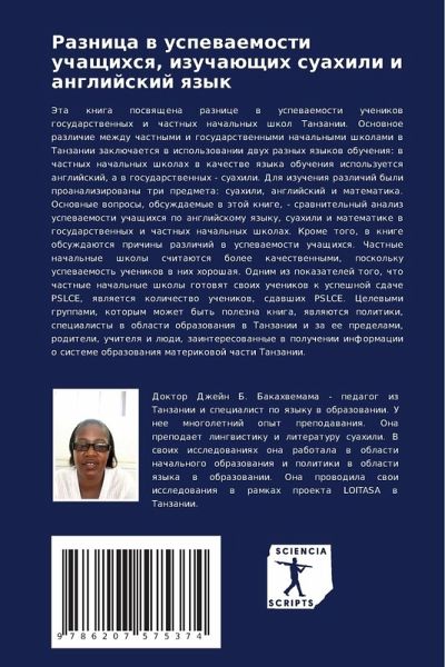 Jeta kniga poswqschena raznice w uspewaemosti uchenikow gosudarstwennyh i chastnyh nachal'nyh shkol Tanzanii. Osnownoe razlichie mezhdu chastnymi i gosudarstwennymi nachal'nymi shkolami w Tanzanii zaklüchaetsq w ispol'zowanii dwuh raznyh qzykow obucheniq: w chastnyh nachal'nyh shkolah w kachestwe qzyka obucheniq ispol'zuetsq anglijskij, a w gosudarstwennyh - suahili. Dlq izucheniq razlichij byli proanalizirowany tri predmeta: suahili, anglijskij i matematika. Osnownye woprosy, obsuzhdaemye w ätoj knige, - srawnitel'nyj analiz uspewaemosti uchaschihsq po anglijskomu qzyku, suahili i matematike w gosudarstwennyh i chastnyh nachal'nyh shkolah. Krome togo, w knige obsuzhdaütsq prichiny razlichij w uspewaemosti uchaschihsq. Chastnye nachal'nye shkoly schitaütsq bolee kachestwennymi, poskol'ku uspewaemost' uchenikow w nih horoshaq. Odnim iz pokazatelej togo, chto chastnye nachal'nye shkoly gotowqt swoih uchenikow k uspeshnoj sdache PSLCE, qwlqetsq kolichestwo uchenikow, sdawshih PSLCE. Celewymi gruppami, kotorym mozhet byt' polezna kniga, qwlqütsq politiki, specialisty w oblasti obrazowaniq w Tanzanii i za ee predelami, roditeli, uchitelq i lüdi, zainteresowannye w poluchenii informacii o sisteme obrazowaniq materikowoj chasti Tanzanii.