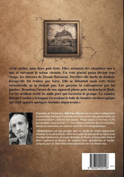 Une ombre, puis deux puis trois. Elles sortaient des chambres une à une et suivaient le même chemin. Un vent glacial passa devant leur visage, les cheveux de Tressie flottaient. Terrifiée elle hurla de douleur lorsqu'elle fut traînée par terre. Elle se débattait mais cette force surnaturelle ne la lâchait pas. Les garçons la rattrapèrent par les jambes. Brandon s'arma de son appareil photo puis enclencha le flash. Un cri strident sortit de nulle part qui terrorisa le groupe. La caméra filmait l'ombre s'échapper en avalant le halo de lumière stroboscopique qui était apparu quelques instants auparavant.