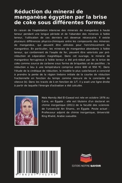 En raison de l'exploitation intensive des minerais de manganèse à haute teneur pendant une longue période et de l'abandon des minerais à faible teneur, l'utilisation de ces derniers est devenue nécessaire. Il existe plusieurs différences physico-chimiques entre les composants des minerais de manganèse, qui peuvent être utilisées pour l'enrichissement du manganèse. En particulier, les minerais de manganèse abondants à faible teneur, qui contiennent de l'oxyde de fer, peuvent être valorisés par pré-réduction et séparation magnétique. Dans cet ouvrage, le minerai de manganèse ferrugineux à faible teneur a été pré-réduit par de la brise de coke comme source de carbone sous forme de briquettes et de pastilles ; la réduction a lieu à une température comprise entre 600 et 950 ºC. Dans l'étude de la cinétique de réduction, le modèle le plus satisfaisant a consisté à prendre la pente de la région linéaire initiale de la courbe de réduction fractionnelle en fonction du temps comme mesure de la constante de vitesse (k). Dans les tracés de k en fonction de 1/T, il y avait une ligne droite à partir de laquelle l'énergie d'activation a été calculée.