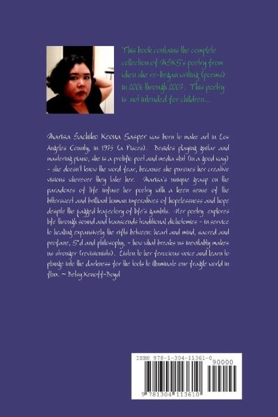 This book contains the complete poetry collection by Marisa Sachiko Keona Gasper from the year of 2006 when she re-began writing (poems), through 2007. This poetry is not intended for children.