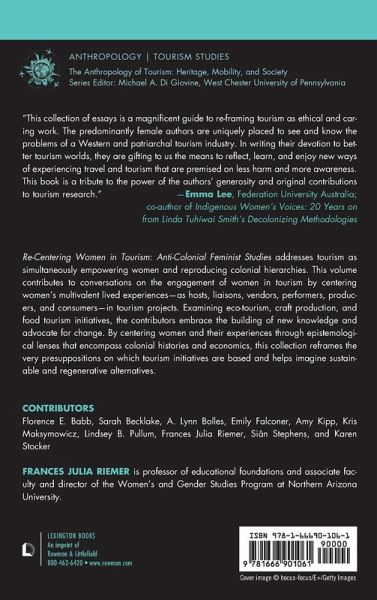 Re-Centering Women in Tourism: Anti-Colonial Feminist Studies addresses tourism as simultaneously empowering women and reproducing colonial hierarchies. This volume contributes to conversations on the engagement of women in tourism by centering women's multivalent lived experiences-as hosts, liaisons, vendors, performers, producers, and consumers-in tourism projects. Examining eco-tourism, craft production, and food tourism initiatives, the contributors embrace the building of new knowledge and advocate for change. By centering women and their experiences through epistemological lenses that encompass colonial histories and economics, this collection reframes the very presuppositions on which tourism initiatives are based and helps imagine sustainable and regenerative alternatives. For more information, check out A Conversation with Frances Julia Riemer, Editor of Re-Centering Women in Tourism: Anti-Colonial Feminist Studies