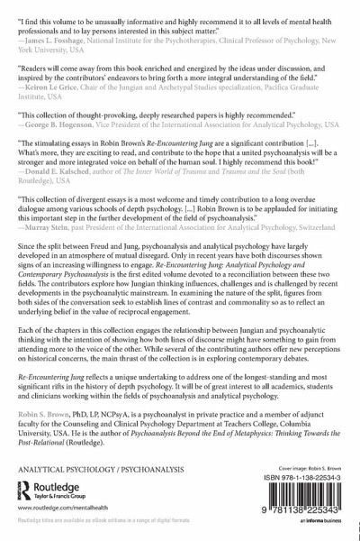 Re-Encountering Jung reflects a unique undertaking to address one of the longest-standing and most significant rifts in the history of depth psychology. It will be of great interest to all academics, students and clinicians working within the fields of psychoanalysis and analytical psychology.