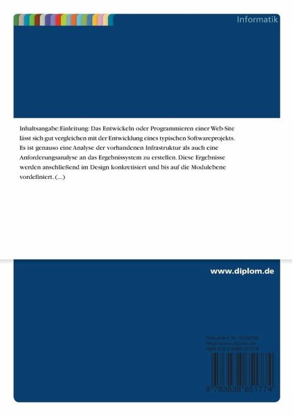 Das Entwickeln oder Programmieren einer Web-Site lässt sich gut vergleichen mit der Entwicklung eines typischen Softwareprojekts. Es ist genauso eine Analyse der vorhandenen Infrastruktur als auch eine Anforderungsanalyse an das Ergebnissystem zu erstellen. Diese Ergebnisse werden anschließend im Design konkretisiert und bis auf die Modulebene vordefiniert. Danach folgt die Implementierung, die abschließende Evaluierung rundet den Entwicklungsprozess ab und das System wird vom Auftraggeber übernommen.