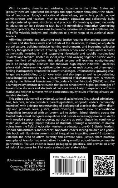 With increasing diversity and widening disparities in the United States and globally there are significant challenges and opportunities throughout the educational landscape. Today's educational stakeholders, particulary public school administrators and teachers, must re-envision education and collectively build equity-centered systems, structures, and practices. Confronting systemic inequality in education can be a daunting task, but it is nonetheless imperative. Connecting theory to practice, this book aims to promote inclusive educational excellence, and will offer valuable insights and inspiration to a wide range of educational stakeholders. Affirming diversity and advancing social justice requires dismantling oppressive customs and structures inside and outside of the classroom, fostering an equitable school culture, building inclusive learning environments, and increasing collective efficacy though best practice. Creating healthier schools and communities requires authentically investing in and supporting historically and socially marginalized students and families. Rooted in social justice and weaving together diverse voices from the field of education, this edited volume will examine equity-focused pre-K-12 pedagogical practices and showcase high-impact initiatives. Educators play a vital role in ensuring positive student outcomes and success, but often report feeling inadequately prepared for current challenges. Unfortunately, growing challenges are contributing to turnover rates and shortages as well as perpetuating social inequities among pre-K-12 students instead of dismantling them. A research study by the National Association of Secondary School Principals (NASSP) and the Learning Policy Institute (LPI) reveals that public schools with higher percentages of low-income students and students of color are more likely to experience administrative and teacher turnover, which compounds equity issues affecting already vulnerable students. This edited volume will provide educational stakeholders (i.e., school administrators, teachers, service providers, parents/guardians, nonprofit leaders, community members) with a deeper understanding of pedagogical practices that affirm diversity and promote social justice, while offering a current view of educational inequalities juxtaposed with an urgent call to action. School districts across the United States must recognize inequalities and provide increasingly diverse students with needed support and resources, particularly as social dispairties continue to widen and adversely impact millions of students. Through a collection of diverse voices from the field of education (university educators; pre-K-12 district leaders, schools administrators and teachers; Nonprofit leaders serving children and youth) this book will illuminate current social inequalities impacting pre-K-16 students, establish the need to affirm diversity and advance social justice, share practical examples of transformative initiatives including mindful school-family- community partnerships, feature evidence-based pedagogical practices, and provide an array of helpful resources for 21st century educational stakeholders.