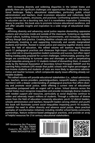 With increasing diversity and widening disparities in the United States and globally there are significant challenges and opportunities throughout the educational landscape. Today's educational stakeholders, particulary public school administrators and teachers, must re-envision education and collectively build equity-centered systems, structures, and practices. Confronting systemic inequality in education can be a daunting task, but it is nonetheless imperative. Connecting theory to practice, this book aims to promote inclusive educational excellence, and will offer valuable insights and inspiration to a wide range of educational stakeholders. Affirming diversity and advancing social justice requires dismantling oppressive customs and structures inside and outside of the classroom, fostering an equitable school culture, building inclusive learning environments, and increasing collective efficacy though best practice. Creating healthier schools and communities requires authentically investing in and supporting historically and socially marginalized students and families. Rooted in social justice and weaving together diverse voices from the field of education, this edited volume will examine equity-focused pre-K-12 pedagogical practices and showcase high-impact initiatives. Educators play a vital role in ensuring positive student outcomes and success, but often report feeling inadequately prepared for current challenges. Unfortunately, growing challenges are contributing to turnover rates and shortages as well as perpetuating social inequities among pre-K-12 students instead of dismantling them. A research study by the National Association of Secondary School Principals (NASSP) and the Learning Policy Institute (LPI) reveals that public schools with higher percentages of low-income students and students of color are more likely to experience administrative and teacher turnover, which compounds equity issues affecting already vulnerable students. This edited volume will provide educational stakeholders (i.e., school administrators, teachers, service providers, parents/guardians, nonprofit leaders, community members) with a deeper understanding of pedagogical practices that affirm diversity and promote social justice, while offering a current view of educational inequalities juxtaposed with an urgent call to action. School districts across the United States must recognize inequalities and provide increasingly diverse students with needed support and resources, particularly as social dispairties continue to widen and adversely impact millions of students. Through a collection of diverse voices from the field of education (university educators; pre-K-12 district leaders, schools administrators and teachers; Nonprofit leaders serving children and youth) this book will illuminate current social inequalities impacting pre-K-16 students, establish the need to affirm diversity and advance social justice, share practical examples of transformative initiatives including mindful school-family- community partnerships, feature evidence-based pedagogical practices, and provide an array of helpful resources for 21st century educational stakeholders.