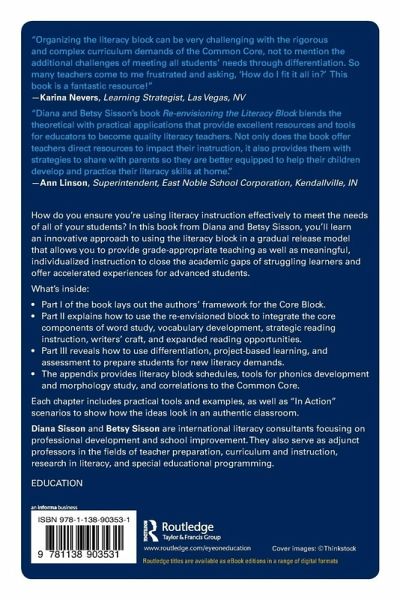 In this book from Diana and Betsy Sisson, you'll learn an innovative approach to using the literacy block in a gradual release model that allows you to provide grade-appropriate teaching as well as meaningful, individualized instruction to close the academic gaps of struggling learners and offer accelerated experiences for advanced students.