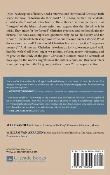 Does the discipline of history need a reformation? How should Christian faith shape the ways historians do their work? This book, written for students, considers the "how" of doing history. The authors first examine the current "liturgies" of the historical profession and suggest that the discipline is in crisis. They argue for "re-formed" Christian practices and methodologies for history. The book asks important questions: why do we do history, and for whom? How should faith shape how we do our research and tell stories? What do we owe the dead? How should Christian historians practice "dangerous memory"? And how can Christian historians do justice, love mercy, and walk humbly with God? How might we rethink, reform, renew, reimagine, and re-practice the study of the past? Christian historians must be sentinels of hope against the world's forgetfulness, the authors argue, and this book offers some pathways for rethinking our practices from a Christian perspective.