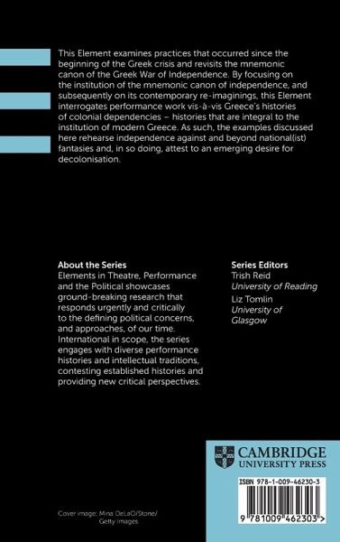 This Element interrogates performance work vis-Ã -vis Greece's histories of colonial dependencies â histories that are integral to the institution of modern Greece. The examples discussed here rehearse independence against and beyond national(ist) fantasies.