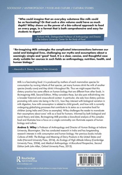 Milk is a fascinating food: it is produced by mothers of each mammalian species for consumption by nursing infants of that species, yet many humans drink the milk of another species (mostly cows) and they drink it throughout life. Thus we might expect that this dietary practice has some effects on human biology that are different from other foods. In Re-imagining Milk Wiley considers these, but also puts milk-drinking into a broader historical and cross-cultural context. In particular, she asks how dietary policies promoting milk came into being in the U.S., how they intersect with biological variation in milk digestion, how milk consumption is related to child growth, and how milk is currently undergoing globalizing processes that contribute to its status as a normative food for children (using India and China as examples). Wiley challenges the reader to re-evaluate their assumptions about cows' milk as a food for humans. Informed by both biological and social theory and data, Re-imagining Milk provides a biocultural analysis of this complex food and illustrates how a focus on a single commodity can illuminate aspects of human biology and culture.