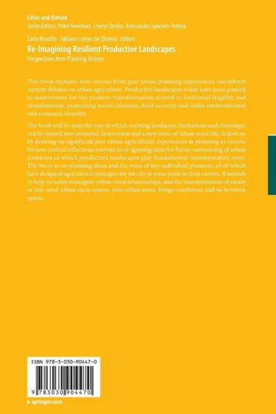 This book explores how lessons from past urban planning experiences can inform current debates on urban agriculture. Productive landscapes today have been posited as instruments for the positive transformation related to territorial fragility and abandonment, promoting social cohesion, food security and wider environmental and economic benefits. The book will re-map the way in which seeming landscape limitations and challenges can be turned into potential, innovation and a new lease of urban-rural life. It does so by drawing on significant past urban agricultural experiences in planning as vectors for new critical reflections relevant to re-igniting ideas for future envisioning of urban scenarios in which productive landscapes play fundamental transformative roles. The focus is on planning ideas and the roles of key individual planners, all of which have designed agricultural strategies for the city at some point in their careers. It intends to help us today reimagine urban-rural relationships, and the transformation of under or mis-used urban open spaces, peri-urban areas, fringe conditions and in-between spaces.