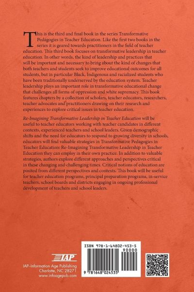 This is the third and final book in the series Transformative Pedagogies in Teacher Education. Like the first two books in the series it is geared towards practitioners in the field of teacher education. This third book focuses on transformative leadership in teacher education. In other words, the kind of leadership and practices that will be important and necessary to bring about the kind of changes that both teachers and students seek to improve educational outcomes for all students, but in particular Black, Indigenous and racialized students who have been traditionally underserved by the education system. Teacher leadership plays an important role in transformative educational change that challenges all forms of oppression and white supremacy. This book features chapters by a collection of scholars, teacher educators, researchers, teacher advocates and practitioners drawing on their research and experiences to explore critical issues in teacher education. The book will be useful to teacher educators working with teacher candidates in different contexts, experienced teachers and school leaders. Given demographic shifts and the need for educators to respond to growing diversity in schools, educators will find valuable strategies in Transformative Pedagogies in Teacher Education: Re-Imagining Transformative Leadership in Teacher Education they can employ in their own practice. In addition to valuable strategies, authors explore different approaches and perspectives critical in these changing and challenging times. Critical notions of education are posited from different perspectives and contexts. This book will be useful for teacher education programs, principal preparation programs, in-service teachers, school boards and districts engaging in ongoing professional development of teachers and school leaders.