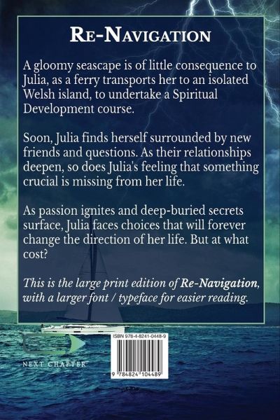 A gloomy seascape is of little consequence to Julia, as a ferry transports her to an isolated Welsh island, to undertake a Spiritual Development course. Soon, Julia finds herself surrounded by new friends and questions. As their relationships deepen, so does Julia's feeling that something crucial is missing from her life. As passion ignites and deep-buried secrets surface, Julia faces choices that will forever change the direction of her life. But at what cost? This is the large print edition of Re-Navigation, with a larger font / typeface for easier reading.