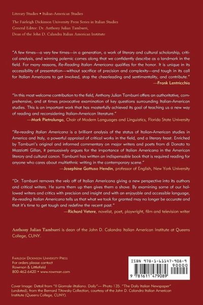 This book is divided into three sections. The first section deals with the general situation of Italian/American literature and its reception both in the United States and in Italy. It also discusses other social and cultural issues that pertain to Italian Americana. Section two consists of six chapters, each discussing a specific author; three dedicated to prose (Pietro di Donato, Mario Puzo, Luigi Barzini), three dedicated to poetry (Joseph Tusiani, Maria Mazziotti Gillan, Rina Ferrarelli). Section three examines the current state of criticism dedicated to Italian/American literature, the second part focusing in on a number of specific works.