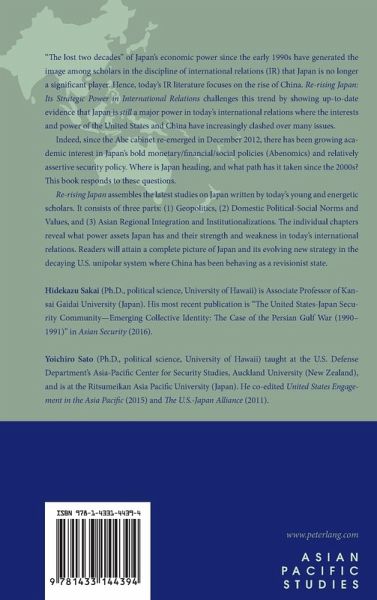 Re-rising Japan assembles the latest studies on Japan written by today's young and energetic scholars. Itconsists of three parts: (1) Geopolitics, (2) Domestic Political-Social Norms and Values, and (3) Asian Regional Integration and Institutionalizations. The individual chapters reveal what power assets Japan has and their strength and weakness in today's international relations. Readers will attain a complete picture of Japan and its evolving new strategy in the decaying U.S. unipolar system where China has been behaving as a revisionist state.