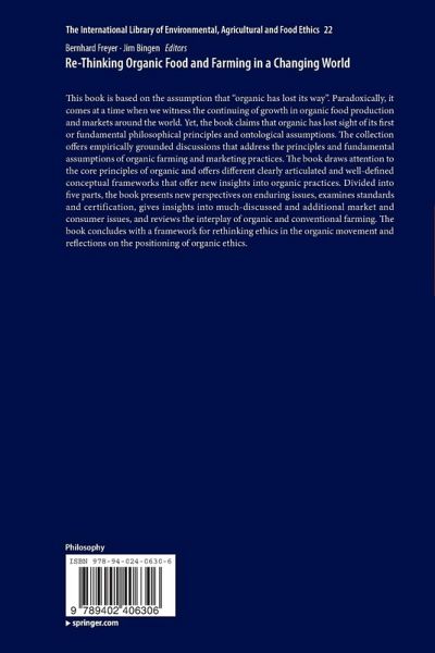 This book is based on the assumption that "organic has lost its way". Paradoxically, it comes at a time when we witness the continuing of growth in organic food production and markets around the world. Yet, the book claims that organic has lost sight of its first or fundamental philosophical principles and ontological assumptions. The collection offers empirically grounded discussions that address the principles and fundamental assumptions of organic farming and marketing practices. The book draws attention to the core principles of organic and offers different clearly articulated and well-defined conceptual frameworks that offer new insights into organic practices. Divided into five parts, the book presents new perspectives on enduring issues, examines standards and certification, gives insights into much-discussed and additional market and consumer issues, and reviews the interplay of organic and conventional farming. The book concludes with a framework for rethinking ethics in the organic movement and reflections on the positioning of organic ethics.