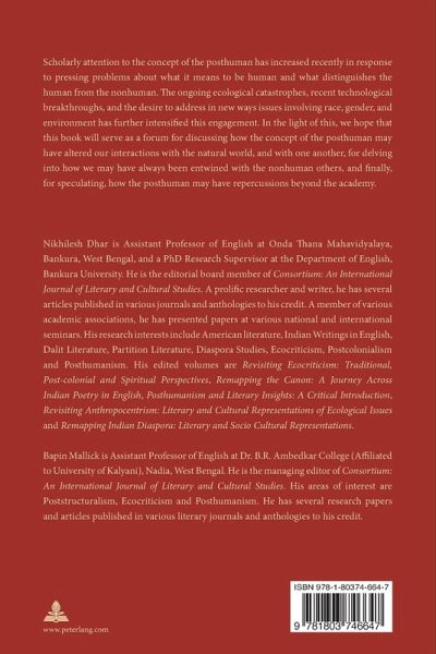 Nikhilesh Dhar is Assistant Professor of English at Onda Thana Mahavidyalaya, Bankura, West Bengal, and a PhD Research Supervisor at the Department of English, Bankura University. He is the editorial board member of¿Consortium: An International Journal of Literary and Cultural Studies. A prolific researcher and writer, he has several articles published in various journals and anthologies to his credit. A member of various academic associations, he has presented papers at various national and international seminars. His research interests include American literature, Indian Writings in English, Dalit Literature, Partition Literature, Diaspora Studies, Ecocriticism, Postcolonialism and Posthumanism. His edited volumes are Revisiting Ecocriticism: Traditional, Post-colonial and Spiritual Perspectives, Remapping the Canon: A Journey Across Indian Poetry in English, Posthumanism and Literary Insights: A Critical Introduction, Revisiting Anthropocentrism: Literary and Cultural Representations of Ecological Issues and Remapping Indian Diaspora: Literary and Socio Cultural Representations. Bapin Mallick is Assistant Professor of English at Dr. B.R. Ambedkar College (Affiliated to University of Kalyani), Nadia, West Bengal. He is the managing editor of Consortium: An International Journal of Literary and Cultural Studies. His areas of interest are Poststructuralism, Ecocriticism and Posthumanism. He has several research papers and articles published in various literary journals and anthologies to his credit.