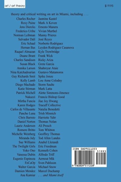 A book of theory and critical writing on art in Miami, Florida, including Charles Recher, Roxy Paine, Jens Diercks, Frederico Uribe, Normal Leibman, Salvador Dali, Guy Richards Smit, Diego Machado, and many more -- plus the city of Miami itself!