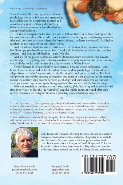 Since the early 20th century, when modern psychology was in its infancy, and attempting to establish itself as a legitimate medical and scientific discipline, it largely divorced itself from its close cousins-the world's religious and spiritual traditions. The infant discipline had a mantra it was to follow: Where Id is, there shall Ego be. But its egoic-primacy offered little aid either for spiritual awakening, or transforming narcissism (the early psychoanalysts considered the former illusory, the latter untreatable). It failed to see them as two wings of the same inner work. And the clinical tradition was left with a very partial view of narcissism's contours-like "blind people describing an elephant." And a diminished sense of what its complete opposite-and thus, its full healing-even looks like. And so, for the plethora of books written about narcissism ever since, they haven't much helped. If anything, our collective narcissism has only increased. And now is oozing out of all the nooks and crannies of a culture-even its White House. Yet for thousands of years there've been spiritual lineages whose perspective-and body of practices-would be helpful adjuncts for modern psychology. For they'd freed adepts from narcissism's ego-centric, erotically crippled, and polarized vision. This book will provide some of this missing perspective, and some of their practices, in the attempt to heal the century-long divorce between psychology and spirituality. For we humans aren't pie charts. Psyche and spirit belong together. And we need all the help we can get. Given all narcissism can impact-our eros, politics, global warming and pandemics-it's time to re-vision it. But this "re-visioning," and the skillful means it would offer can't merely concern a few "adepts." It's now a planetary and evolutionary imperative.