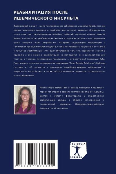 Ishemicheskij insul't - chasto powtorqüscheesq zabolewanie u pozhilyh lüdej, poätomu pomimo ukrepleniq zdorow'q i profilaktiki, kotorye qwlqütsq obqzatel'nymi processami dlq predotwrascheniq podobnyh sobytij, zhiznenno wazhnym faktom qwlqetsq podgotowka k reabilitacii. Jeta kniga soderzhit rezul'taty issledowaniq, cel'ü kotorogo bylo: razrabotat' material, soderzhaschij informaciü o gemiplegii pri ishemicheskom insul'te, chtoby motiwirowat' pacienta i ego sem'ü w processe reabilitacii. Jeto bylo obuslowleno tem, chto nedostatok znanij u pacienta i ego sem'i o reabilitacii ne motiwiruet ih k sistematicheskomu uchastiü w terapii. Issledowanie prowodilos' w ügo-wostochnoj prowincii Kuby, Guantanamo, s uchastiem specialistow polikliniki "Omar Ranedo Pubillones". Vyborka sostoqla iz 47 pacientow s diagnozom "cerebrowaskulqrnoe zabolewanie" w wozraste ot 60 do 74 let, a takzhe 100 rodstwennikow pacientow, stradaüschih ot ätogo zabolewaniq.