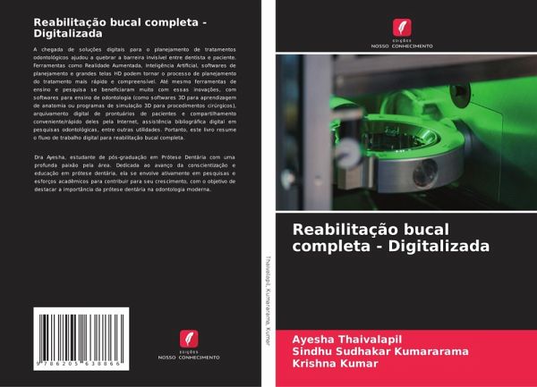 A chegada de soluções digitais para o planejamento de tratamentos odontológicos ajudou a quebrar a barreira invisível entre dentista e paciente. Ferramentas como Realidade Aumentada, Inteligência Artificial, softwares de planejamento e grandes telas HD podem tornar o processo de planejamento do tratamento mais rápido e compreensível. Até mesmo ferramentas de ensino e pesquisa se beneficiaram muito com essas inovações, com softwares para ensino de odontologia (como softwares 3D para aprendizagem de anatomia ou programas de simulação 3D para procedimentos cirúrgicos), arquivamento digital de prontuários de pacientes e compartilhamento conveniente/rápido deles pela Internet, assistência bibliográfica digital em pesquisas odontológicas, entre outras utilidades. Portanto, este livro resume o fluxo de trabalho digital para reabilitação bucal completa.