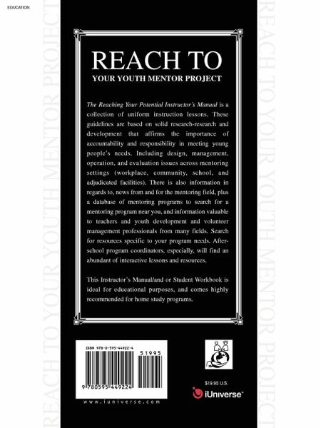 The Reaching Your Potential Instructor's Manual is a collection of uniform instruction lessons. These guidelines are based on solid research-research and development that affirms the importance of accountability and responsibility in meeting young people's needs. Including design, management, operation, and evaluation issues across mentoring settings (workplace, community, school, and adjudicated facilities). There is also information in regards to, news from and for the mentoring field, plus a database of mentoring programs to search for a mentoring program near you, and information valuable to teachers and youth development and volunteer management professionals from many fields. Search for resources specific to your program needs. After-school program coordinators, especially, will find an abundant of interactive lessons and resources.
