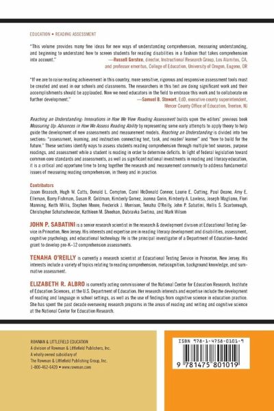 Reaching an Understanding: Innovations in How We View Reading Assessment builds upon the editors previous book Measuring Up: Advances in How We Assess Reading Ability by representing some early attempts to apply theory to help guide the development of new assessments and measurement models.