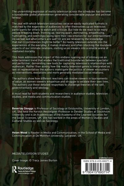 The unremitting explosion of reality television across the schedules has become a sustainable global phenomenon generating considerable popular and political fervour. The zeal with which television executives seize on the easily replicated formats is matched equally by the eagerness of audiences to offer themselves up as television participants for others to watch and criticise. But how do we react to so many people breaking down, fronting up, tearing apart, dominating, empathising, humiliating, and seemingly laying bare their raw emotion for our entertainment? Do we feel sad when others are sad? Or are we relieved by the knowledge that our circumstances might be better? As reality television extends into the experiences of the everyday, it makes dramatic and often shocking the mundane aspects of our intimate relations, inviting us as viewers into a volatile arena of mediated morality. This book addresses the impact of this endless opening out of intimacy as an entertainment trend that erodes the traditional boundaries between spectator and performer demanding new tools for capturing television's relationships with audiences. Rather than asking how the reality television genre is interpreted as 'text' or representation the authors investigate the politics of viewer encounters as interventions, evocations, and more generally mediated social relations. The authors show how different reactions can involve viewers in tournaments of value, as women viewers empathise and struggle to validate their own lives. The authors use these detailed responses to challenge theories of the self, governmentality and ideology. A must read for both students and researchers in audience studies, television studies and media and communication studies.