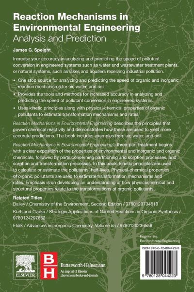 Reaction Mechanisms in Environmental Engineering: Analysis and Prediction describes the principles that govern chemical reactivity and demonstrates how these principles are used to yield more accurate predictions. The book will help users increase accuracy in analyzing and predicting the speed of pollutant conversion in engineered systems, such as water and wastewater treatment plants, or in natural systems, such as lakes and aquifers receiving industrial pollution. Using examples from air, water and soil, the book begins with a clear exposition of the properties of environmental and inorganic organic chemicals that is followed by partitioning and sorption processes and sorption and transformation processes.