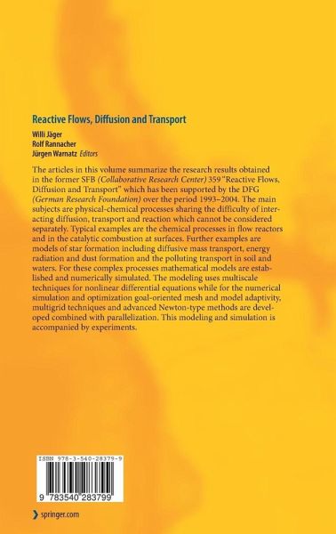 Mathematical Analysis for Transport-Reaction Systems.- Fluid Flows and Free Boundaries.- Nonlinear Evolution Equations and Applications.- Navier-Stokes Equations and Chemical Reactions.- Mesh and Model Adaptivity for Flow Problems.- Parallel Multigrid on Locally Refined Meshes.- Solving Multidimensional Reactive Flow Problems with Adaptive Finite Elements.- Optimization Methods for Reactive Flows.- Robustness Aspects in Parameter Estimation, Optimal Design of Experiments and Optimal Control.- Multiple Set Point Partially Reduced SQP Method for Optimal Control of PDE.- Adaptive Finite Element Methods for PDE-Constrained Optimal Control Problems.- Chemical Reaction Systems.- Determination of Kinetic Parameters in Laminar Flow Reactors. I. Theoretical Aspects.- Determination of Kinetic Parameters in Laminar Flow Reactors. II. Experimental Aspects.- Optimization of Reactive Flows in a Single Channel of a Catalytic Monolith: Conversion of Ethane to Ethylene.- Reaction Processes on Catalytically Active Surfaces.- Stochastic Modeling and Deterministic Limit of Catalytic Surface Processes.- Turbulent Flow and Combustion.- Multigrid Methods for Large-Eddy Simulation.- Modeling and Simulation of Turbulent Non-Reacting and Reacting Spray Flows.- Transport and Diffusion in Boundary Layers of Turbulent Channel Flow.- Diffusion and Transport in Accretion Discs.- Evolution of Protoplanetary Disks Including Detailed Chemistry and Mineralogy.- Numerical Methods for Multidimensional Radiative Transfer.- Flows in Porous Media.- Multiscale Analysis of Processes in Complex Media.- Microscopic Interfaces in Porous Media.- High-Accuracy Approximation of Effective Coefficients.- Numerical Simulation and Experimental Studies of Unsaturated Water Flow in Heterogeneous Systems.- Lake Dynamics: Observation and High-Resolution Numerical Simulation.- Computer Visualization.- Advanced Flow Visualization with HiVision.- VisuSimple: An Interactive Visualization Utility for Scientific Computing.- Volume Rendering in Scientific Applications.